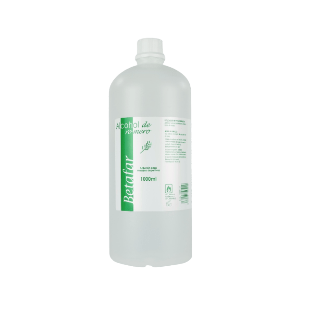 Alcohol de Romero – Cuidado natural para la circulación, músculos y piel El Alcohol de Romero Betafar es un producto de uso externo ampliamente utilizado tanto en el ámbito doméstico como en la práctica deportiva y el cuidado geriátrico. Su formulación a base de extracto de romero proporciona propiedades tonificantes, antiinflamatorias y estimulantes de la circulación. Es especialmente eficaz en casos de trastornos circulatorios, ayudando a aliviar la pesadez de piernas, varices y celulitis. En medicina deportiva, se emplea para aliviar dolores musculares y articulares tras esfuerzos físicos o lesiones leves, favoreciendo la relajación muscular. También está indicado como coadyuvante en la prevención de úlceras por decúbito en personas encamadas, y puede utilizarse en el tratamiento de la dermatitis seborreica y la caída del cabello gracias a su acción tonificante sobre el cuero cabelludo. Características destacadas: • Alcohol de Romero de uso externo • Mejora la circulación y alivia la pesadez de piernas y varices • Útil en el tratamiento de celulitis • Alivia dolores musculares y articulares en medicina deportiva • Previene úlceras por decúbito en personas encamadas • Coadyuvante en dermatitis seborreica y caída del cabello • Presentación: envase de 1000 ml .