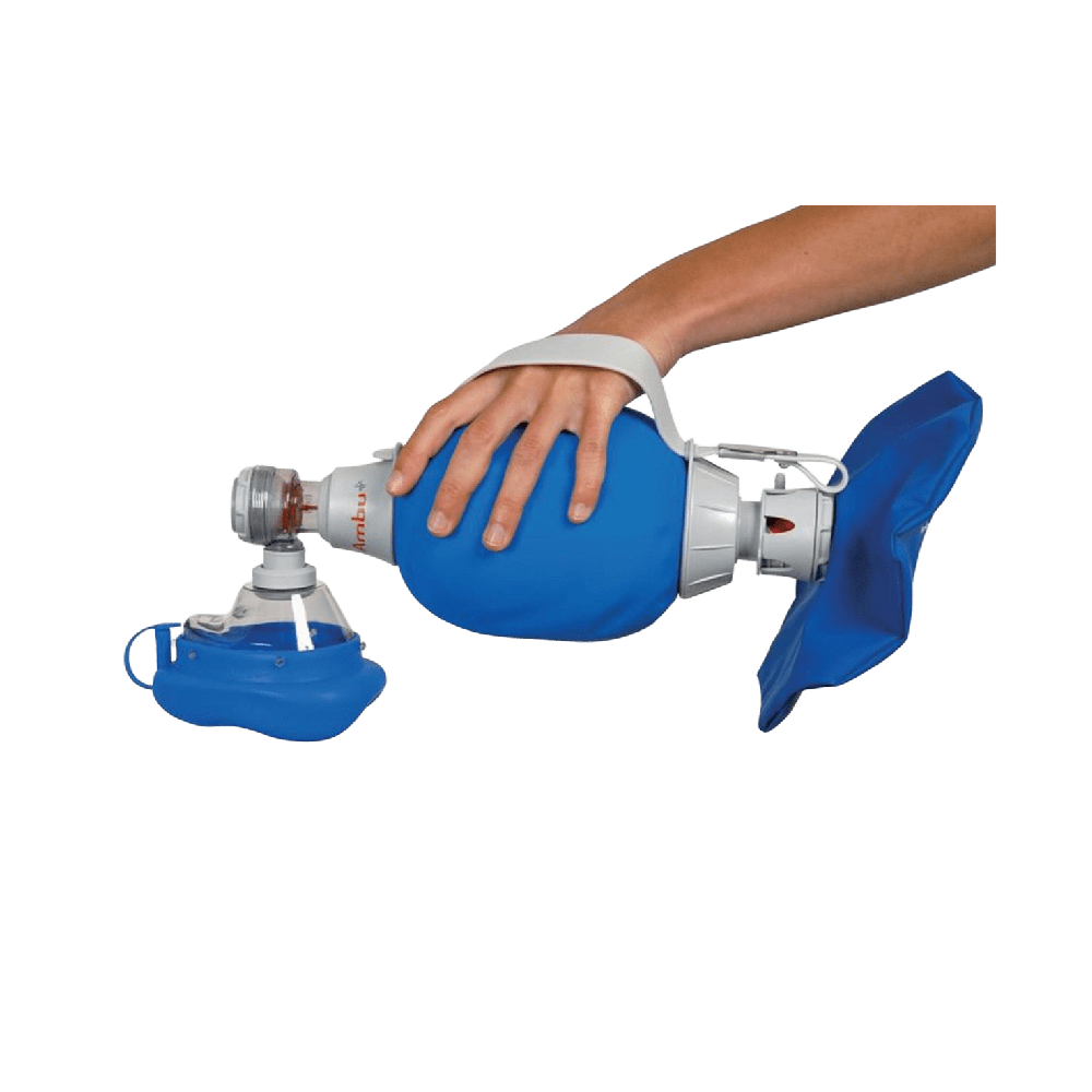 Resucitador manual de silicona esterilizable, para ventilación y reanimación en niños. Incluye bolsa, válvula anti-retorno y reservorio de oxígeno. Cumple normativa EN ISO 10651-4:2009, resistente hasta 134°C, fácil de limpiar y reutilizar, ideal para emergencias médicas