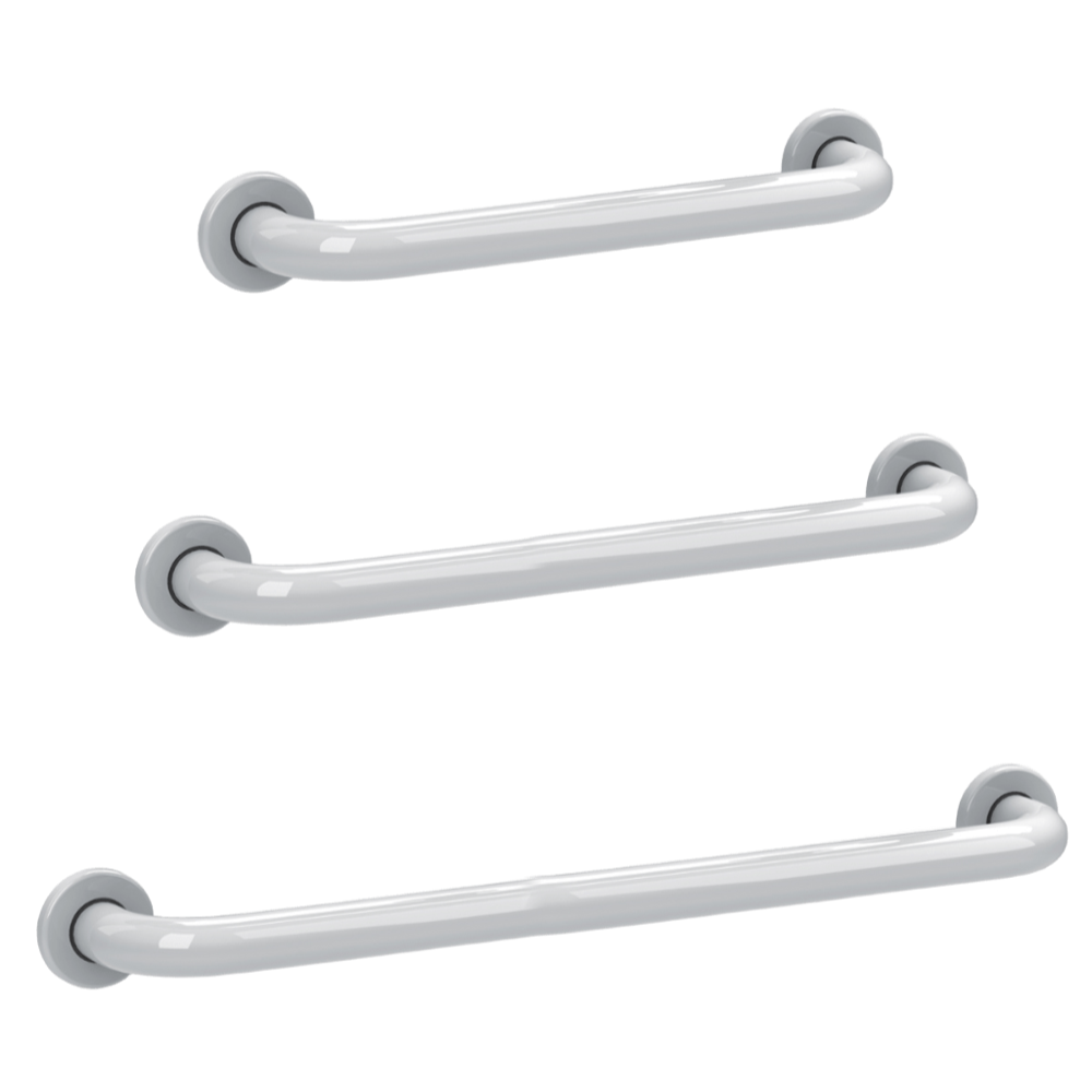 ASIDERO RECTA ACERO PINTADO BLANCO - UNIDAD Asidero recto de acero pintado en blanco, diseñado para ofrecer apoyo seguro en baños y duchas. Resistente, higiénico y adecuado para entornos sanitarios y de alto uso.