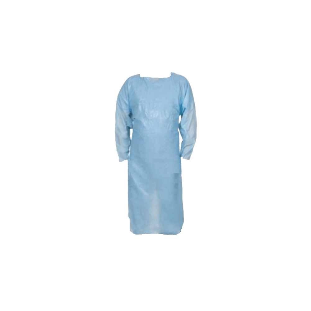 Bata azul plastificada protección UNIDIX 35 gr – Caja de 10 unidades. Bata plastificada de manga larga fabricada en tejido bicapa de tejido sin tejer y plastificada.