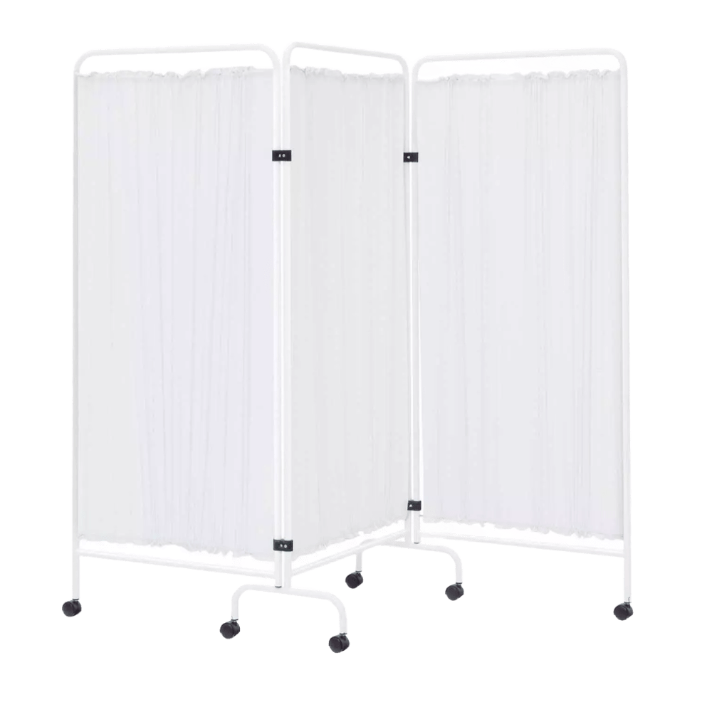Biombo de 3 Cuerpos – Estructura Metálica y Telas Lavables Biombo médico de tres cuerpos independientes y plegables, ideal para preservar la privacidad del paciente en entornos clínicos. Fabricado con estructura tubular de acero esmaltado en epoxi, que ofrece gran resistencia y durabilidad. Cada cuerpo cuenta con telas plastificadas desmontables y lavables, lo que facilita su limpieza y mantenimiento. Equipado con ruedas pivotantes de 45 mm, permite un desplazamiento fácil y silencioso. Opcionalmente, se puede fabricar en versión de dos cuerpos o incorporar telas con motivos infantiles, ideal para áreas pediátricas. Características principales: • Biombo de 3 cuerpos plegables. • Estructura en tubo de acero esmaltado epoxi. • Telas plastificadas, desmontables y lavables. • Ruedas pivotantes de Ø45 mm. • Medidas: 80 × 1770 × 750 mm. • Peso: 12 kg. .
