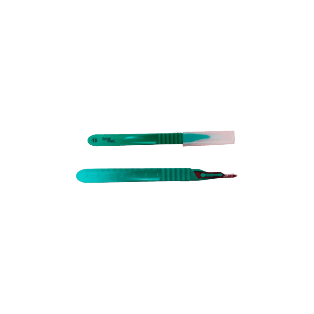 El bisturí estéril desechable “Razormed” es un instrumento quirúrgico de un solo uso, diseñado para garantizar seguridad, precisión y esterilidad en procedimientos médicos. Compuesto por un mango resistente, una hoja afilada de acero inoxidable y una capucha protectora translúcida, ofrece una herramienta confiable tanto en cirugías generales como en intervenciones menores. El producto está esterilizado mediante radiación gamma (>25 kGy) según la norma ISO 11137 y se presenta en empaques individuales para asegurar su integridad y esterilidad hasta el momento de uso. Gracias a su variedad de tamaños de hoja (#10, #11, #15, #21, #22, #24), se adapta fácilmente a distintos tipos de procedimientos clínicos, permitiendo al profesional seleccionar el modelo más adecuado según las necesidades del caso. - Composición del Bisturí • Mango: o Material: ABS o Color: Verde o Indicativo numérico grabado en el reverso o Escala métrica de 50 mm • Hoja: o Material: Acero inoxidable o Normativa: ISO 7153 o Grabado con número identificativo o Tamaños disponibles: #10, #11, #15, #21, #22, #24 - Beneficios Clave • Hoja con acabado liso y sin rebabas • Capucha que preserva la esterilidad y seguridad • Identificación rápida del tipo de hoja • Escala métrica para dimensionar incisiones • Libre de látex .