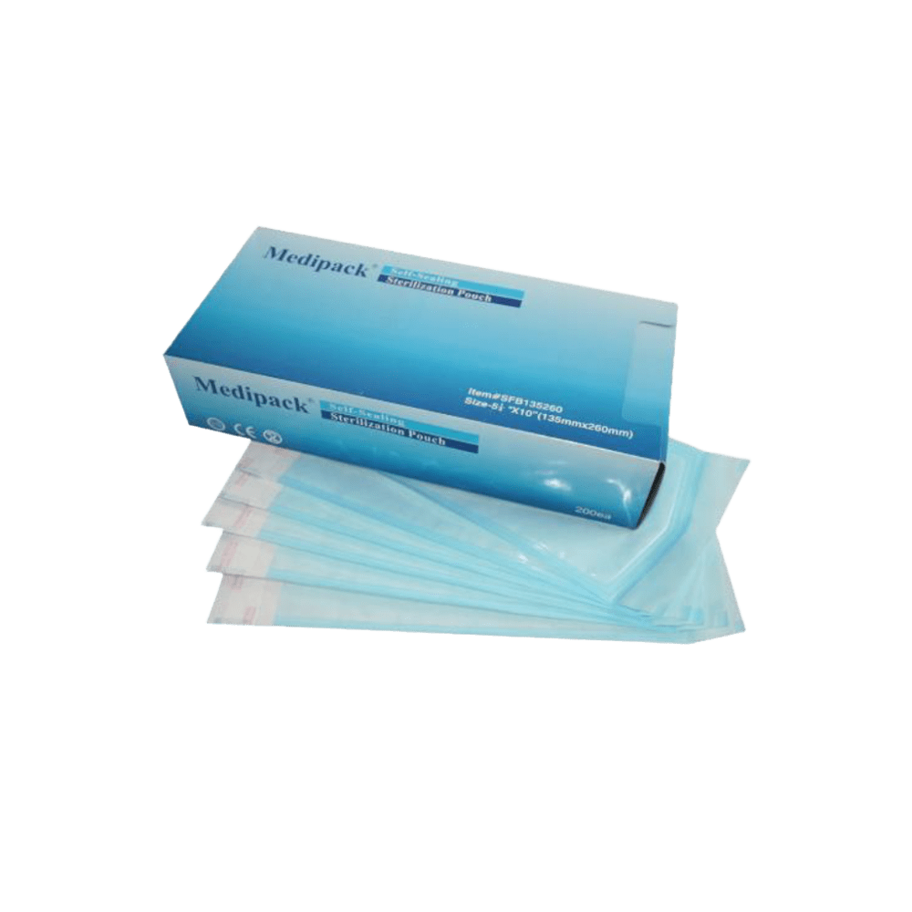 Bolsas autoadhesivas para esterilización, disponibles en varias medidas. Están compuestas por una cara de papel médico y otra de film plástico translúcido con tonalidad azulada, lo que permite visualizar su contenido. Incorporan indicadores de proceso para verificar la esterilidad. Aptas para esterilización por vapor, óxido de etileno y radiación. Son de un solo uso y totalmente desechables, ideales para mantener la seguridad y la higiene en entornos clínicos. - Seguridad • Triple línea de termo sellado: asegura el sello estéril. • Indicadores de esterilidad: confirman el tipo de proceso y que fue completado correctamente. - Comodidad y facilidad de uso • Cierre autoadhesivo: no requiere selladora. • Bolsas maleables: permiten un manejo más cómodo. - Visibilidad y control • Film azul translúcido: facilita la identificación visual del contenido y detección de roturas. - Versatilidad • Amplia variedad de tamaños: se adaptan a diferentes tipos de productos a esterilizar. - Características técnicas de los materiales: - Papel médico: • Peso: 60 g/m² (mínimo 57 g/m²) • Alta resistencia al estallido, rasgado y tracción, tanto en condiciones secas como húmedas. • Porosidad y absorción controladas, ideales para esterilización. • Libre de fluorescencia y pH neutro, compatible con equipos médicos. • Tamaño máximo de poro: 35 μm - Film laminado: • Composición: PET (12 μm) + Polipropileno (40 μm) + Capa de adhesivo (3 μm) • Grosor total: 55 ± 5 μm • Alta resistencia a la tracción, impacto y rasgado. • Excelente barrera contra vapor de agua y oxígeno. • Contracción térmica mínima: ≤ 0.26% • No contiene metales pesados (plomo, mercurio, etc.) .