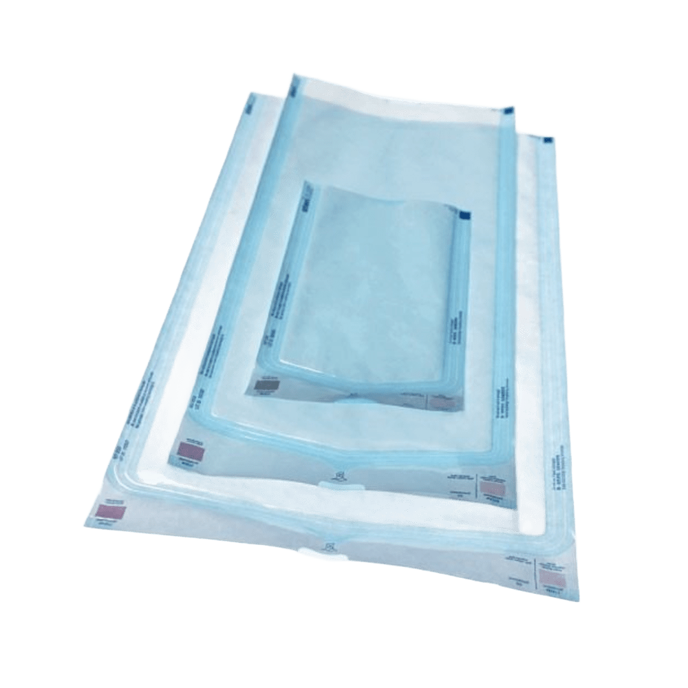 Bolsa Mixta Papel/Film para Esterilización Bolsa mixta para envasado y esterilización de material médico, fabricada en papel grado médico y film PET/PP azul, con indicadores de proceso para vapor, óxido de etileno y formaldehído.