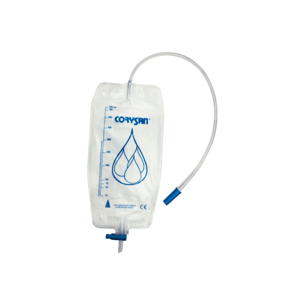 Bolsa de orina pierna 750 ml – Recogida cómoda y segura durante el día Bolsa de 750 ml con válvula antirretorno y válvula de vaciado en cruz. Diseño contorneado, con escala graduada y control visual. Caja de 30 unidades.