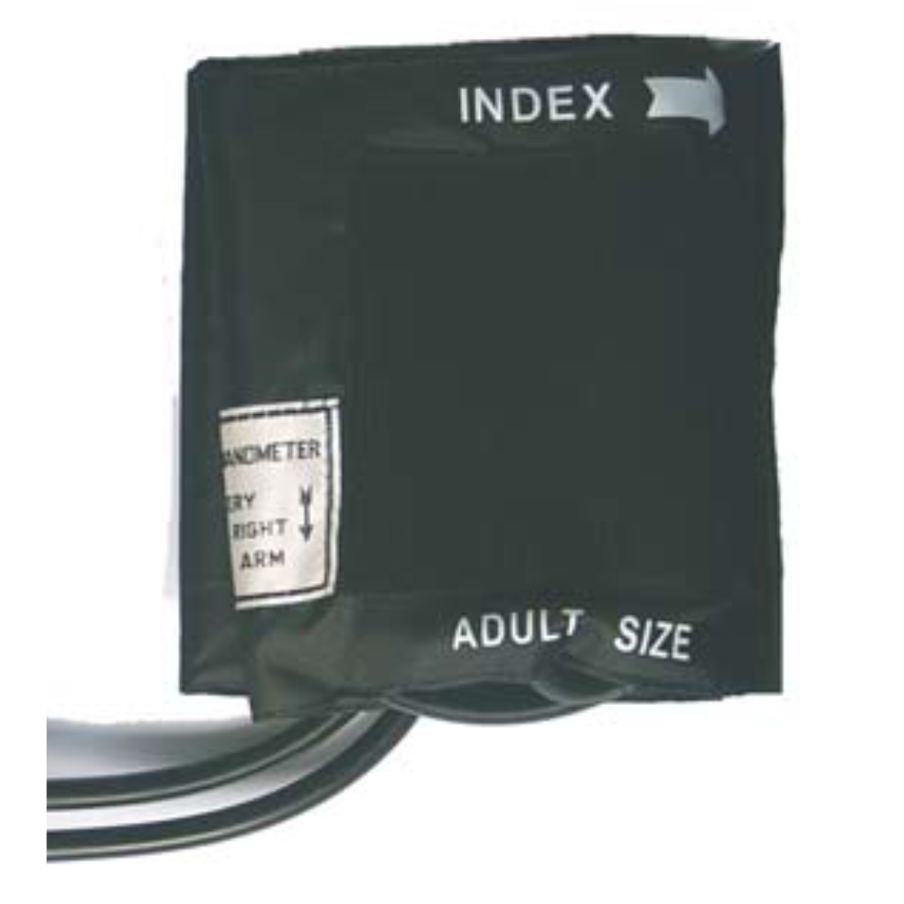 Brazalete tensiómetro Japón 2 salidas con velcro adulto. Brazalete para tensiómetro con doble salida y cierre de velcro, diseñado para uso en pacientes adultos.