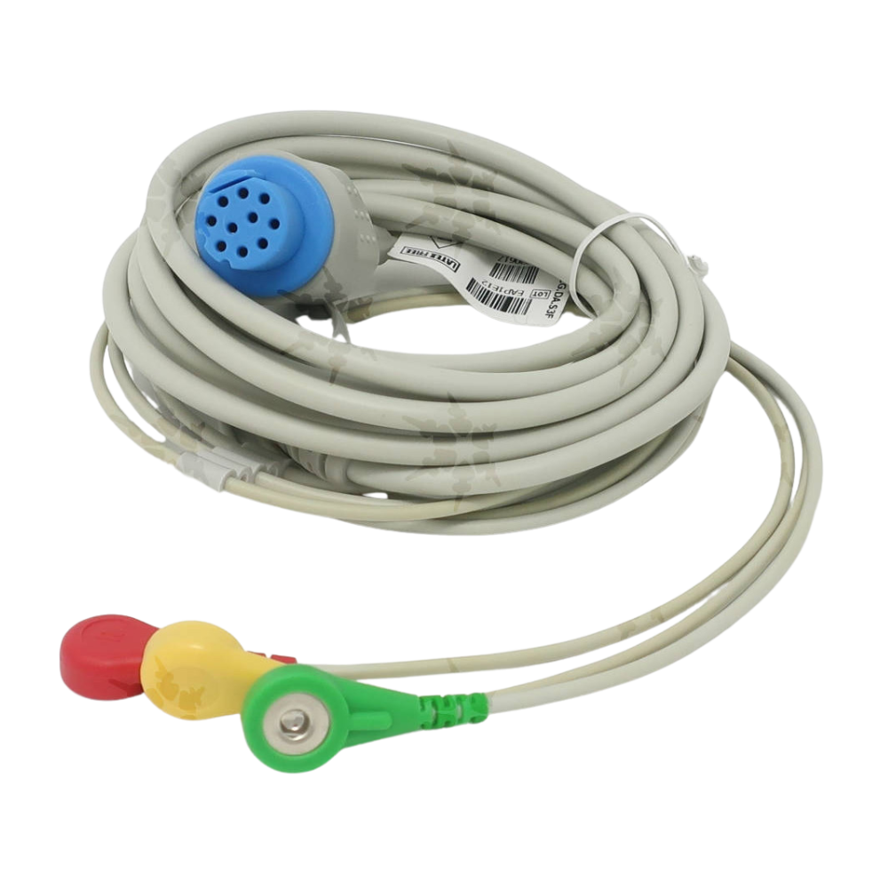 Cable ECG de 3 Vías – Tipo Clip – Compatible con GE Datex Ohmeda / CardioAid El Cable ECG de 3 vías tipo clip es un accesorio médico diseñado para monitoreo cardíaco de alta precisión en equipos GE – Datex Ohmeda y CardioAid. Su configuración de 3 derivaciones permite un registro confiable del ritmo cardíaco, ideal para aplicaciones en quirófanos, cuidados intensivos y monitorización ambulatoria. Equipado con conectores de electrodo tipo clip (también compatibles con adaptadores snap de 4 mm Ø), este cable asegura una conexión rápida, segura y estable. Su diseño está optimizado para garantizar compatibilidad total con monitores como AS/3, CS/3, S/5, Cardiocap I, II, Cardiocap 5, Light Monitor y Satlite Plus. Características principales: Tipo de cable: ECG de 3 vías (derivaciones). Conector al electrodo: clip (adaptable a snap de 4 mm Ø). Compatibilidad: GE – Datex Ohmeda: AS/3, CS/3, S/5 Cardiocap I, II, Cardiocap 5 Light Monitor, Satlite Plus Aplicación: monitoreo cardíaco en entornos hospitalarios. Diseño: seguro, fácil de usar y con excelente calidad de señal. .