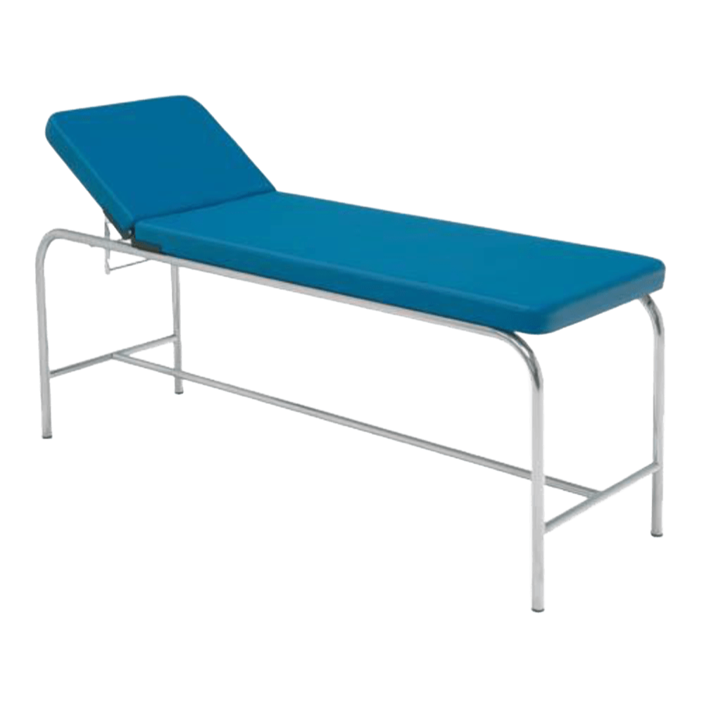 Camilla para exploración y reconocimiento – Comodidad, resistencia y ajuste seguro Estructura de acero cromado, cabecero regulable 70°, acolchado en polipiel ignífuga y alta capacidad de carga. Ideal para consultas y revisiones médicas.