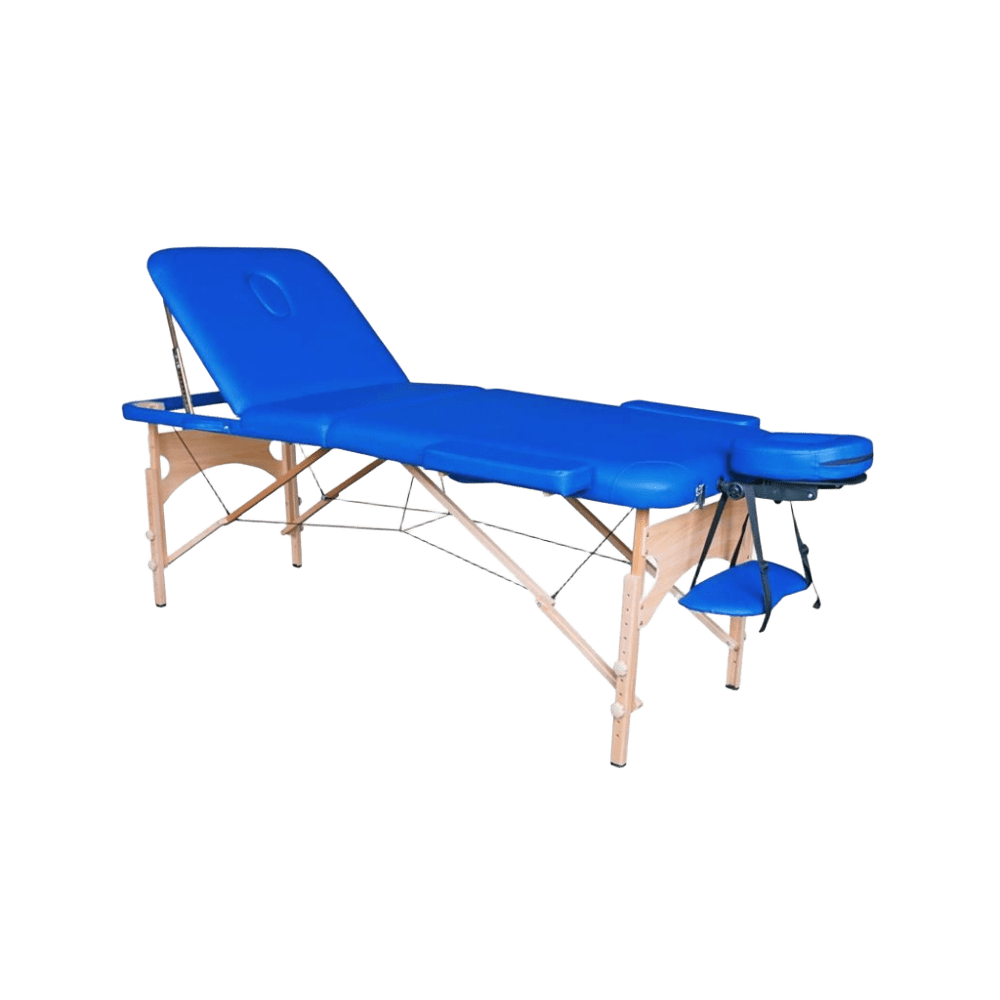 Camilla plegable de madera 3 cuerpos – confort, funcionalidad y diseño profesional Estructura de madera resistente con tapizado en cuero sintético y espuma de alta densidad, ideal para masajes, terapias y tratamientos estéticos.