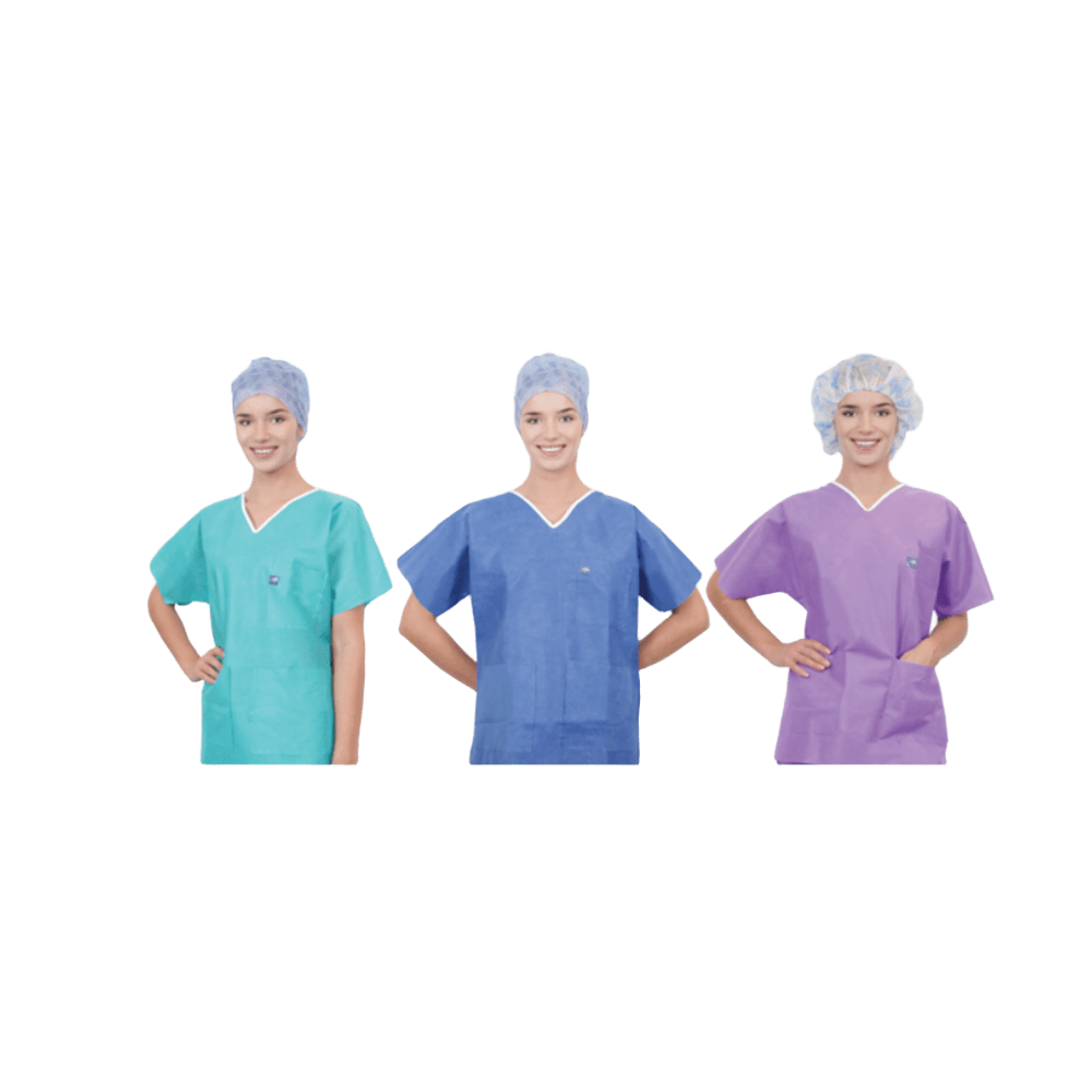 Chaqueta Pijama Quirúrgico Medline – Transpirable, cómoda y de un solo uso Chaqueta quirúrgica de un solo uso, fabricada en material SMS transpirable. Cuello en V, diseño tipo campana y tres bolsillos funcionales.