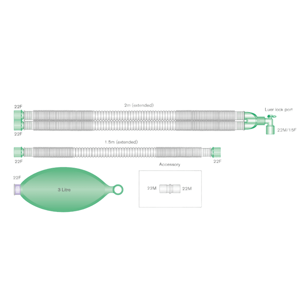 Circuitos Respiratorios Extensibles 22 mm – Adulto Circuitos coarrugados en polipropileno, extensibles, ligeros y transparentes. Reducen la resistencia al flujo, mantienen la forma y permiten una conexión segura y precisa al paciente.