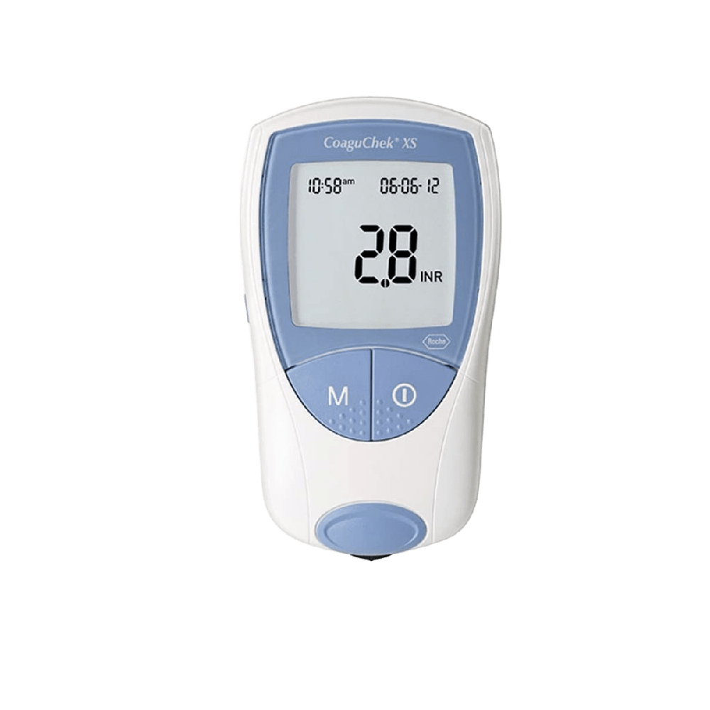 Monitor portátil CoaguChek XS para medición rápida y precisa del INR en pacientes bajo tratamiento anticoagulante.
