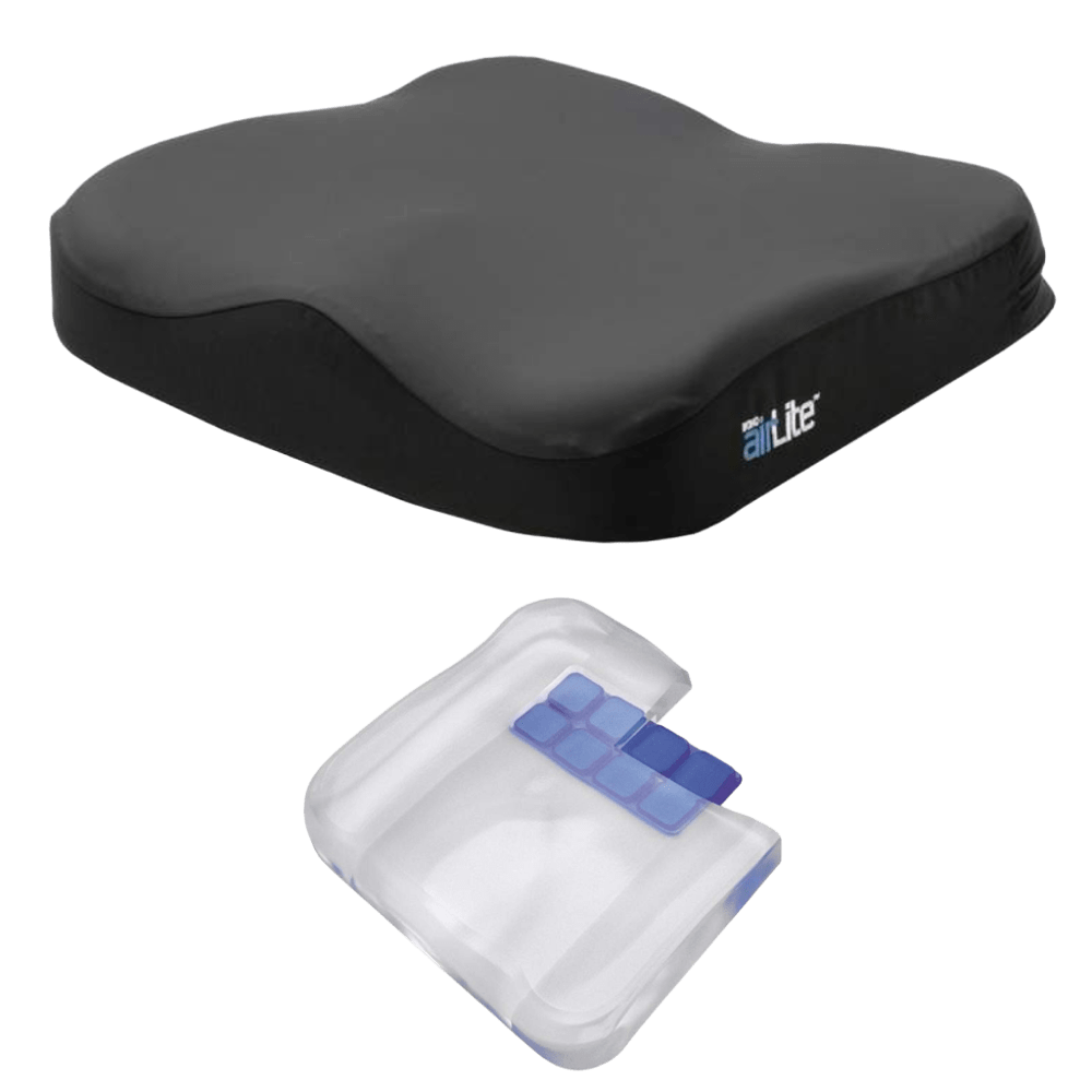 COJÍN AIRLITE ROHO 43 cm. X 43 cm. - UNIDAD Cojín sanitario ROHO AirLite de 43 x 43 cm, diseñado para ofrecer soporte postural y alivio de presión gracias a su combinación de espuma moldeada y base de aire integrada. Ligero, cómodo y ideal para uso diario en sillas de ruedas o asientos convencionales.