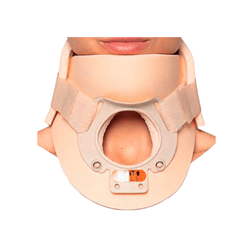 Collarín rígido adaptable tipo ortesis, fabricado en dos piezas de termoplástico LDPE, con bordes forrados y almohadillas de espuma. Limita flexión, extensión y rotación cervical, con apoyo esternal y mentoniano. Disponible en varias tallas (perímetro cuello 47-52 cm), cierre de velcro, materiales hipoalergénicos y compatibles con la piel. Indicado para tortícolis, traumatismos leves, contracturas, latigazo cervical y protección post-operatoria. Cumple normativa CE, vida útil 5 años1234.