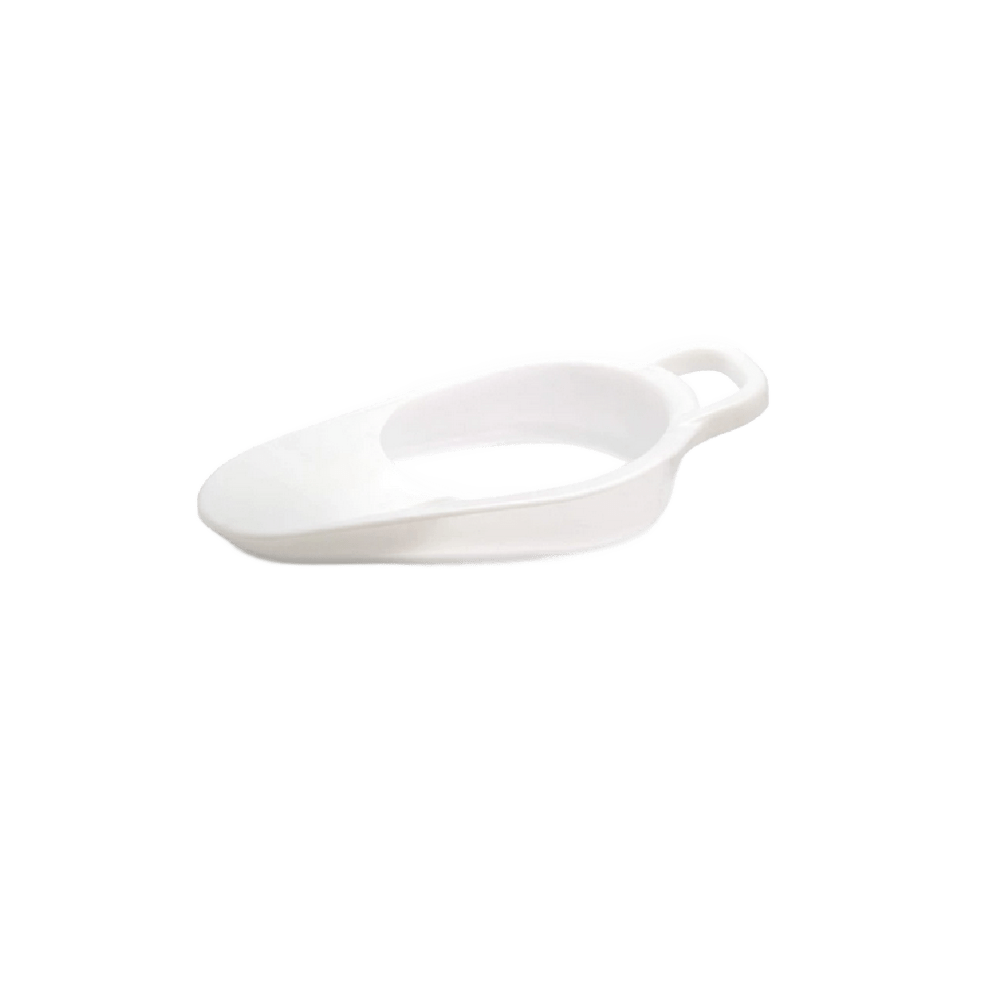 Cuña sanitaria femenina de polipropileno, reutilizable, anatómica, resistente y apta para autoclave.