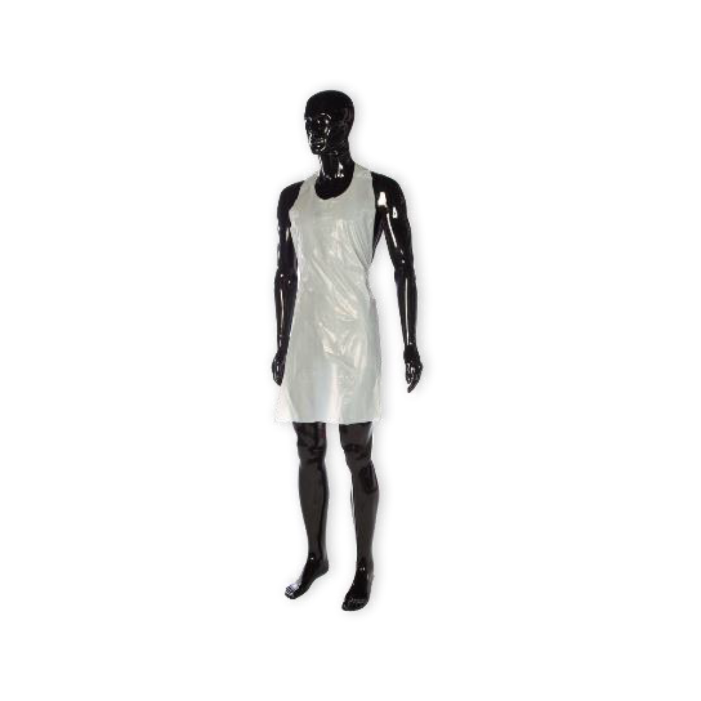 Delantal Plástico Desechable Blanco Delantal de polietileno en colores blanco, ideal para protegerte durante diversas actividades.