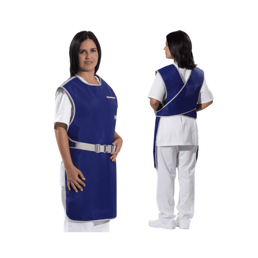 Delantal Plomado Anti-RX – Protección Frontal Delantal radiológico con protección frontal y refuerzo cruzado en la espalda. Cierre con hebilla. Apto para operadores y pacientes. Fácil de usar, limpiar y desinfectar.
