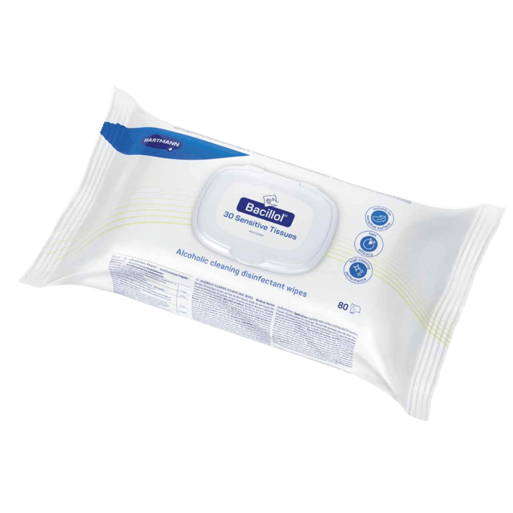 Bacillol Tissues – Toallitas impregnadas con desinfectante alcohólico sin residuos ni fragancia Bacillol Tissues son toallitas desinfectantes listas para su uso, impregnadas con Bacillol AF, una solución alcohólica de acción rápida y sin necesidad de aclarado. No contienen fragancias, colorantes ni aldehídos, por lo que son ideales para superficies sensibles y entornos donde se requiera una desinfección eficaz sin dejar residuos ni olores. Están fabricadas en celulosa de alta calidad y tienen un tamaño de 225 × 119 mm, lo que permite cubrir áreas amplias. Son prácticas y eficaces para la desinfección de superficies lisas de dispositivos médicos no invasivos, escritorios, camas clínicas, carros de curas, entre otros. El rendimiento de las Bacillol Tissues puede variar ligeramente en función de factores como la temperatura ambiente y la textura de la superficie a tratar. Características destacadas: • Toallitas desinfectantes listas para usar • Impregnadas con Bacillol AF (base alcohólica) • Sin fragancias, aldehídos ni colorantes • No deja residuos – secado rápido • Material: celulosa resistente • Tamaño: 225 × 119 mm • Uso práctico en superficies médicas y áreas de trabajo .