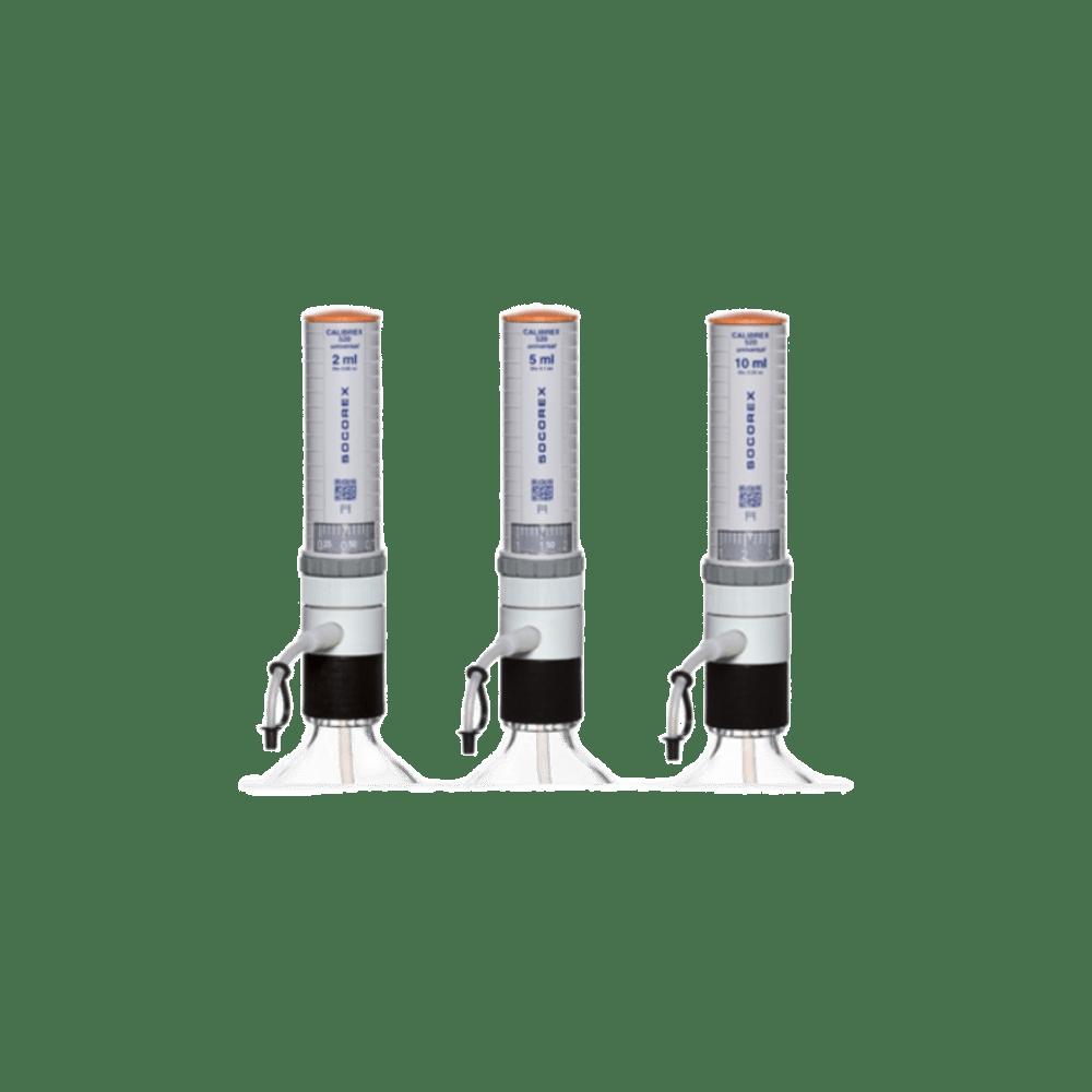 Dispensador Calibrex Universal 520 de 1-10ML Dispensador Calibrex™ Universal 520, rango de 1 a 10 ml. Alta precisión, ajuste fácil del volumen y compatibilidad con reactivos en laboratorios clínicos y científicos.