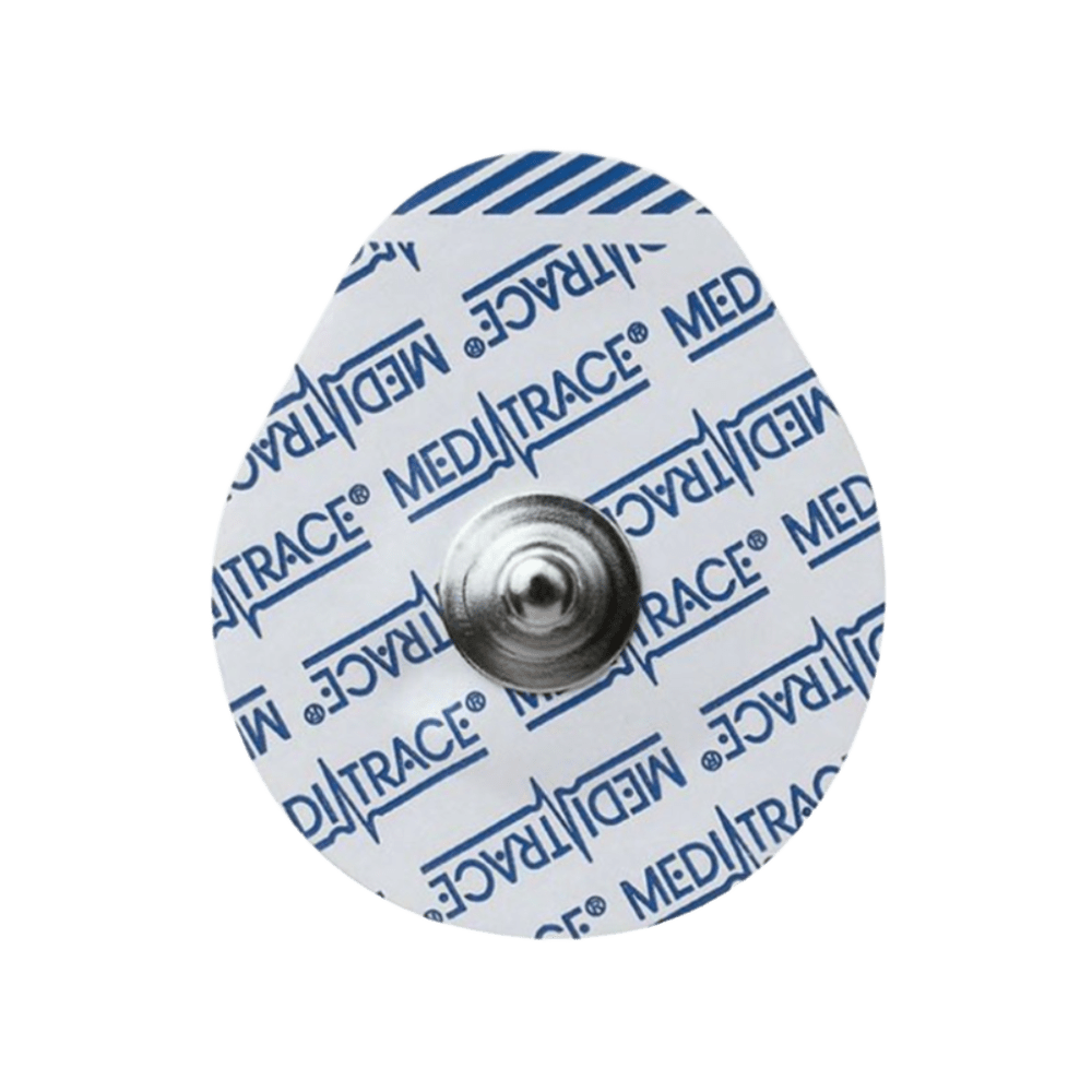 Electrodo Kendall™ Medi-Trace 530 – Precisión para Holter y Pruebas de Esfuerzo Electrodo desechable con forma de lágrima, ideal para monitorización continua. Adhesivo seguro, gel conductor de calidad y diseño compatible con broche tipo snap.