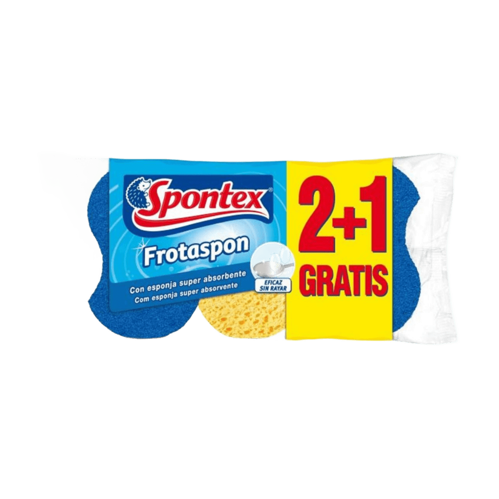 Estropajo Spontex Frotaspon no raya – Limpieza eficaz y delicada Esponja vegetal súper absorbente. Limpia sin rayar superficies delicadas. Pack de 3 unidades.