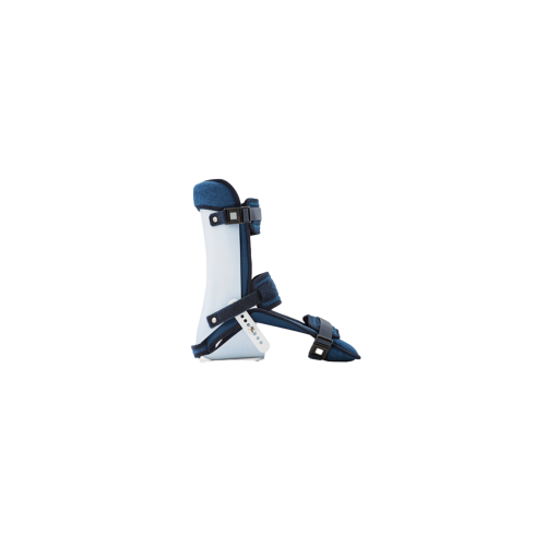 Férula Multiposicional Pie-Tobillo – Color Blanco Férula de polietileno con regulación de flexión plantar y dorsal en rangos de 0° a 75°, forro interior lavable y sistema de cierre con cinchas y almohadillas. Apta para pie izquierdo o derecho.
