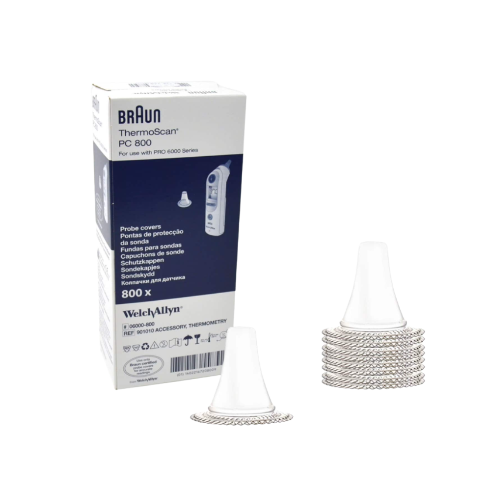 Funda desechable termómetro timpánico Braun PRO6000 – Higiene y precisión en cada medición Fundas protectoras de un solo uso para el termómetro Braun PRO6000. Garantizan mediciones higiénicas y seguras.