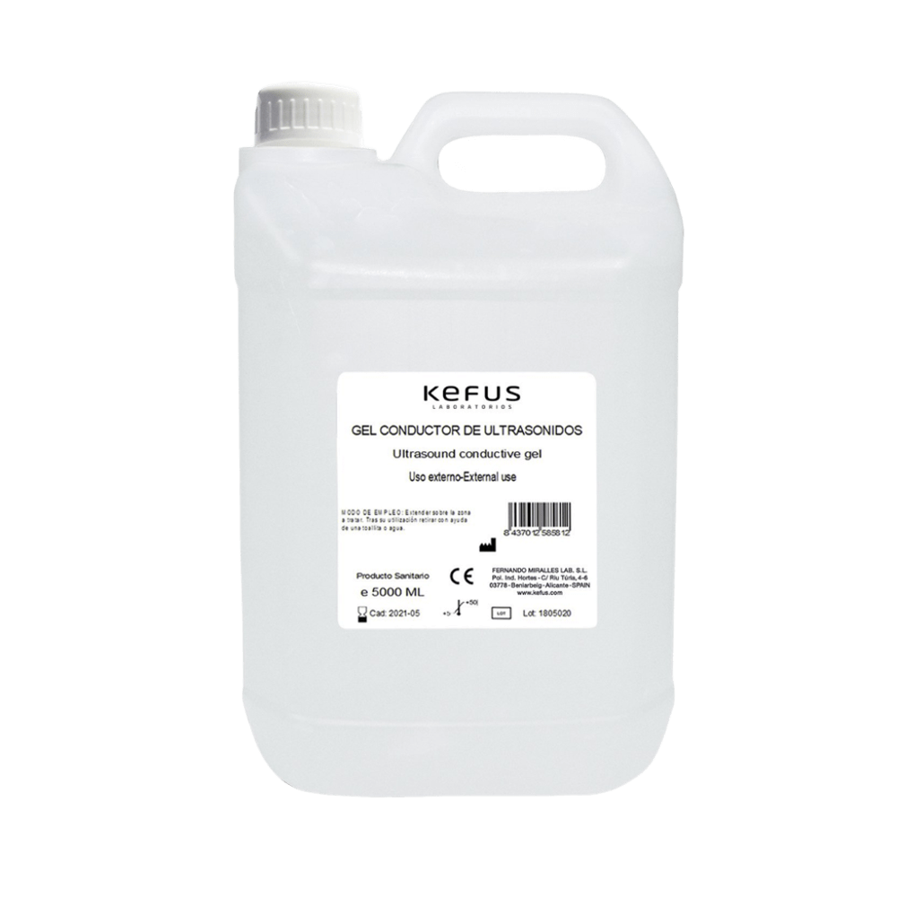 Gel Ultrasonidos Transparente Kefus – Envase 5000 g Gel conductor de ultrasonidos de alta calidad, sin sales oxidantes. Ideal para ecografías, tratamientos estéticos y procedimientos con tecnología IPL o láser.