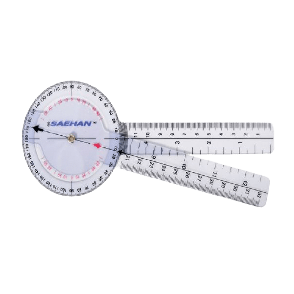 Las características y composición: Goniómetro de plástico rígido con longitud de 20 cm, diseñado para medir rangos de movimiento articular con escalas en grados y centímetros según el sistema ISOM. Producto ligero, duradero y fácil de manipular, ideal para evaluación clínica y rehabilitación. Beneficios incluyen precisión y facilidad de uso. Modo de empleo: Colocar el goniómetro sobre la articulación a medir, alinear correctamente con puntos anatómicos de referencia y leer el ángulo o distancia para evaluar movilidad o progreso en terapias.