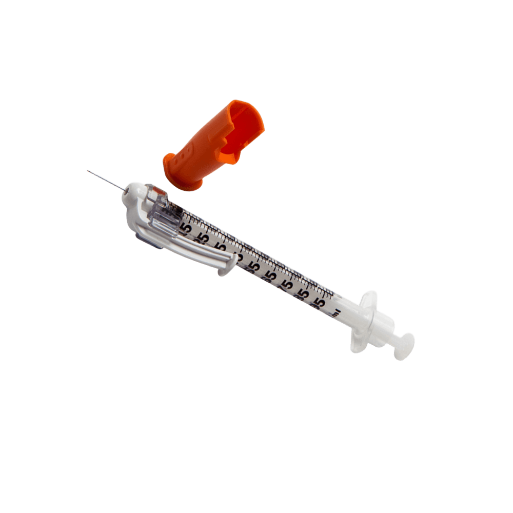 Jeringa de Seguridad SFG 0,3 ml con Aguja 31G x 8 mm – Protección post-inyección Jeringa de insulina de un solo uso con sistema de seguridad integrado y aguja fija. Graduación precisa y protección eficaz contra pinchazos.