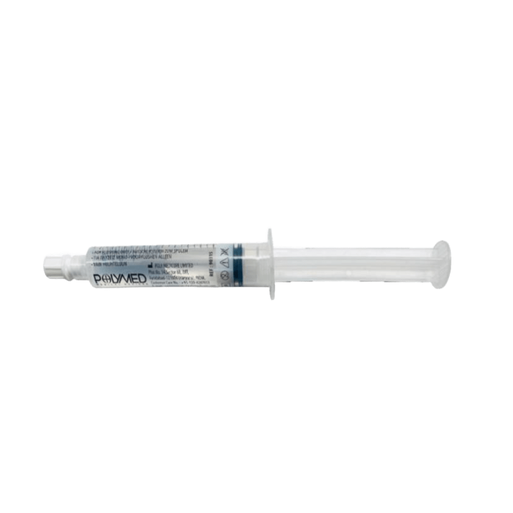 Jeringa Precargada SSF “Polyflush” – Conexión Luer-Lock Estéril Jeringa de tres cuerpos precargada con solución salina (NaCl 0,9%), ideal para el mantenimiento de accesos venosos. Con tapa y diseño antiflujo. Desechable y estéril. Disponible en varios volúmenes.
