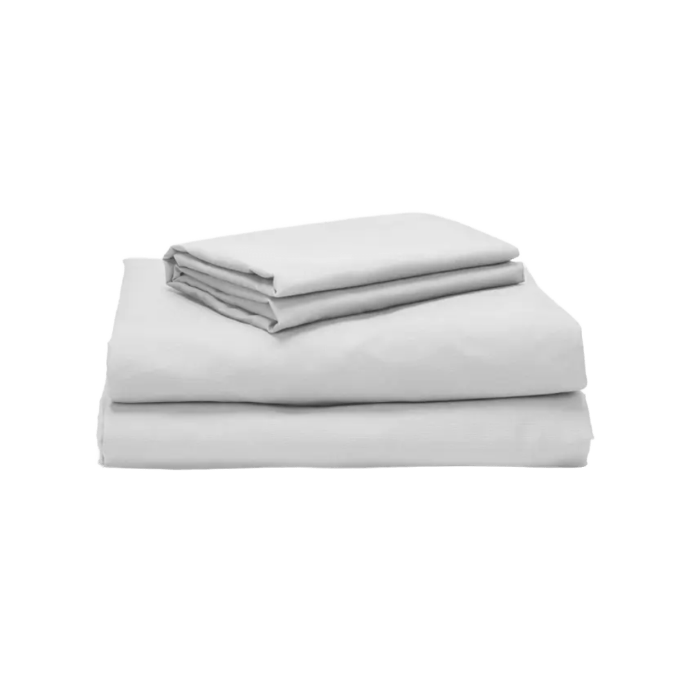 Juego sábanas blancas 3 piezas para cama 90*190 Juego de sábanas blancas de 3 piezas para cama individual (90 x 190 cm), ideal para uso sanitario, hospitalario o residencial. Fabricadas en tejido resistente, suave e higiénico.