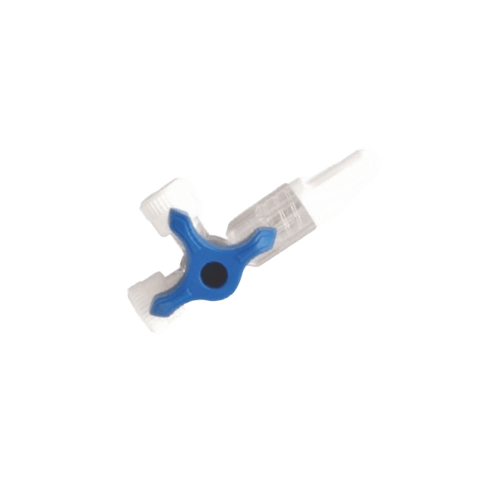 Llave de 3 Vías Lípidoresistente “Unidix” – Conexión Complementaria para Infusión Llave giratoria de 3 vías para administración de líquidos o medicamentos. Lípidoresistente, con conexiones Luer-lock, cuerpo transparente y válvula azul con flechas indicadoras. Desechable y estéril.