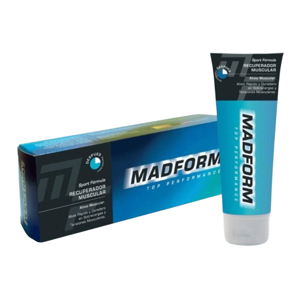 MAD FORM SPORT FORMULA – Alivio rápido para músculos y articulaciones Crema de acción frío-calor que ayuda a aliviar dolores musculares y articulares, ideal para calentamiento deportivo y recuperación tras lesiones. Contiene vitaminas A, C y E, y se absorbe rápidamente.