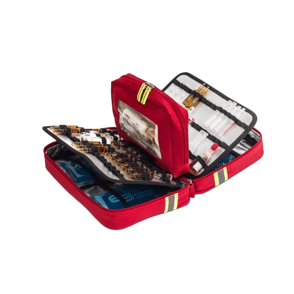Maletín Ampulario Isotérmico PROBE’S Rojo – Seguridad, capacidad y acceso rápido en el manejo de medicamentos El ampulario isotérmico PROBE’S de gran capacidad ha sido diseñado especialmente para profesionales de la salud que necesitan transportar medicación delicada de forma segura y eficiente. Con una capacidad para hasta 46 ampollas de distintos tamaños, garantiza una organización interna óptima gracias a sus bandejas con pestañas identificativas, que permiten localizar rápidamente cada fármaco durante una emergencia. Fabricado en poliéster 600D resistente, cuenta con interior acolchado para proteger contra impactos y un sistema isotérmico avanzado que mantiene los medicamentos a la temperatura adecuada. Su cierre de velcro rápido y seguro y el asa ergonómica de transporte facilitan un manejo cómodo incluso en situaciones críticas. Con un diseño robusto, compacto y ligero, este ampulario es una herramienta imprescindible para equipos de emergencia, rescatistas, clínicas móviles y servicios domiciliarios. Características destacadas: • Capacidad para 46 ampollas de distintos tamaños • Material isotérmico avanzado – conserva temperatura interna • Interior acolchado para protección frente a impactos • Bandejas con pestañas identificativas – organización eficiente • Cierre rápido de velcro – acceso inmediato • Asa ergonómica para transporte cómodo • Material: poliéster 600D duradero • Color: rojo • Peso aprox.: 0,65 kg • Dimensiones: 28 × 21 × 9 cm • Capacidad: 5,29 litros • Carga máxima recomendada: 3,5 kg