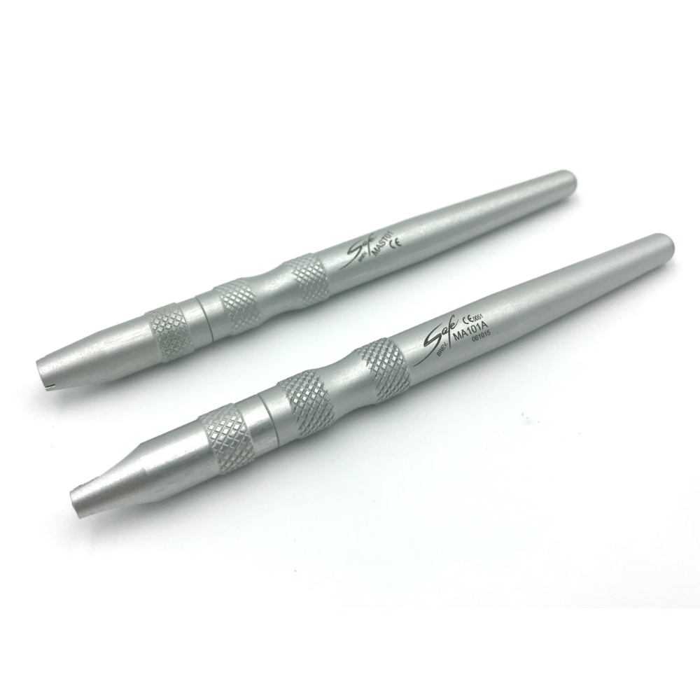 Mangos ergonómicos de aluminio, diseñados para ofrecer un equilibrio perfecto que garantiza un uso cómodo y seguro durante los procedimientos. Fáciles de lavar, pueden ser desinfectados y esterilizados en autoclave sin perder sus propiedades. Importante: no son aptos para esterilización química con ácido peracético. Disponibles en dos tamaños: nº 1 y nº 2, adaptándose a diferentes necesidades clínicas.