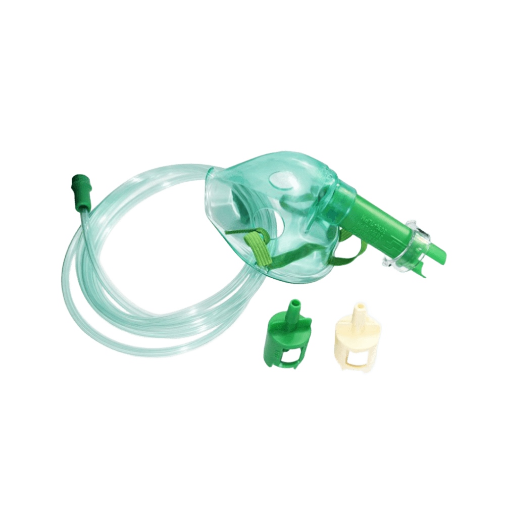 Oximask™ – Mascarilla de Oxígeno para Paciente Traqueostomizado Mascarilla tipo Venturi con 7 niveles de concentración, diseñada para pacientes traqueostomizados, con carilla anatómica de PVC blando, tubo de conexión de 2 m y pieza nasal ajustable para una oxigenoterapia cómoda y segura.