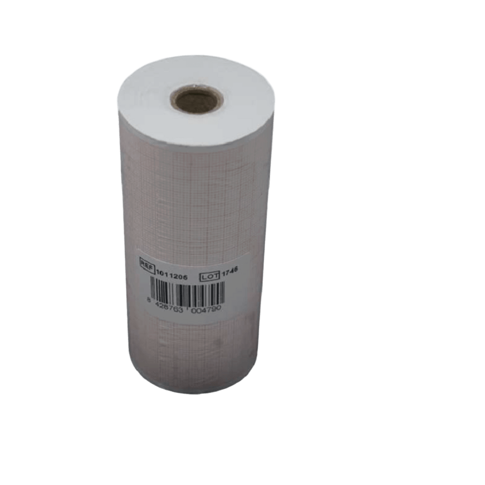 Papel ECG en Rollo – 112 mm x 25 m Papel térmico de alta calidad para ECG, pruebas de esfuerzo y espirometría. Compatible con equipos New Tech Ecg-6100/ ASPE / BTL 08 MD3-MD-MT / KALAMED KES-601T / CMICS MEDICAL ECG-1206 / GEM-MED GEM HEART ONE/+ y sistemas de impresión por cabezal térmico.