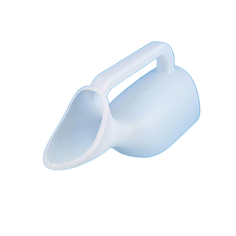 Orinal femenino diseñado anatómicamente para poderse usar sentada o de pie. Con mango y calibrado exterior para registrar la capacidad del contenido. Resistente y fácil de lavar.