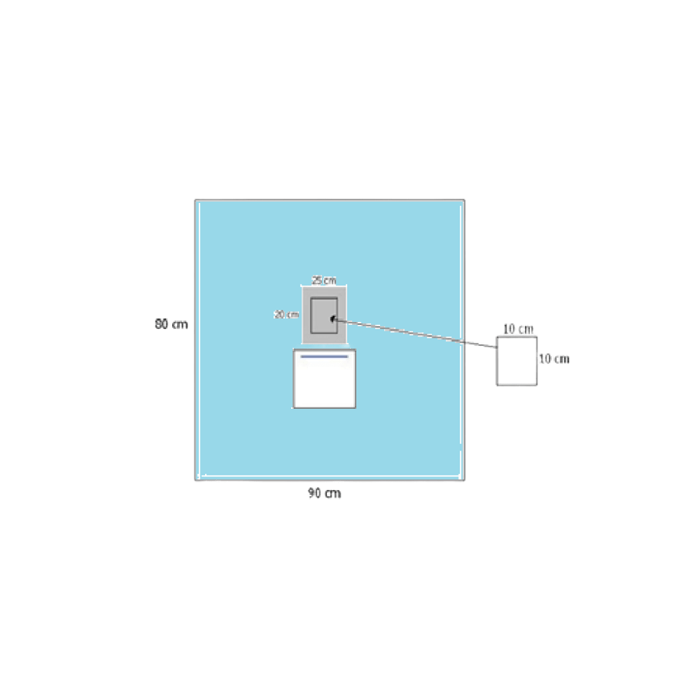 Paño oftalmológico estéril embolsado unitario, tamaño 90x80 cm, con bolsa colectora. Uso en cirugías oculares para mantener esterilidad y controlar líquidos.