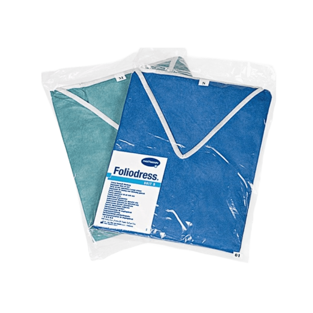Foliodress Suit Protect Blue – Pijama médico desechable de tejido transpirable con tratamiento antiestático Foliodress Suit Protect Blue es un pijama médico desechable fabricado en material non-woven transpirable, diseñado para ofrecer comodidad y protección en entornos clínicos. Su tratamiento antiestático mejora la seguridad en áreas sensibles, reduciendo el riesgo de acumulación de cargas eléctricas. El conjunto incluye pantalones con cintas ajustables en la cintura, que permiten un ajuste cómodo y seguro para distintos tipos de cuerpo. La túnica de manga corta, con cuello redondo y dos bolsillos funcionales, proporciona practicidad y libertad de movimiento durante el trabajo asistencial o quirúrgico. Es una prenda ligera, ergonómica y de uso profesional, ideal para zonas limpias, salas blancas o áreas de preparación quirúrgica. Características destacadas: • Pijama médico de un solo uso • Material non-woven transpirable • Tratamiento antiestático • Pantalones con cintas ajustables en la cintura • Túnica de manga corta con cuello redondo • Incluye dos bolsillos prácticos • Cómodo, ligero y funcional