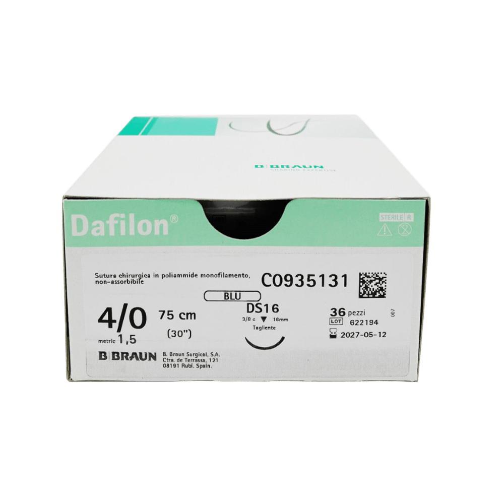 Sutura Dafilon – Alta precisión y mínima reacción tisular en suturas permanentes La Sutura Dafilon es un material de sutura sintético no absorbible fabricado en poliamida monofilamento, diseñado para ofrecer una excelente resistencia mecánica y un paso suave a través de los tejidos. Gracias a su superficie lisa, permite una manipulación atraumática, reduciendo el daño tisular durante la sutura. Indicada para el cierre de tejidos que requieren una sujeción prolongada o permanente, la Sutura Dafilon es ideal en cirugía cutánea, plástica, oftalmológica y otros procedimientos quirúrgicos donde se desea una mínima reacción tisular y un resultado estético óptimo. Características destacadas: • Material sintético no absorbible • Composición: poliamida monofilamento • Excelente resistencia mecánica y estabilidad • Paso atraumático y suave a través de los tejidos • Baja reacción inflamatoria • Fácil manipulación y alta seguridad en el nudo .