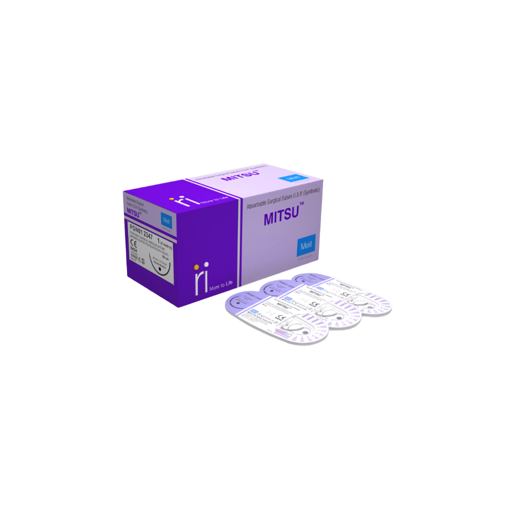 Mitsu™ es una sutura quirúrgica estéril, absorbible y trenzada, elaborada a partir de poliglactina 910, un copolímero sintético compuesto por 90% de glicolida y 10% de L-lactida. Su recubrimiento mejora el paso por los tejidos y facilita un anudado preciso y suave. Diseñada para ofrecer una resistencia a la tracción confiable durante las primeras semanas del proceso de cicatrización, retiene hasta el 75% de su fuerza a los 14 días y el 50% a los 21 días, con una absorción completa entre los 56 y 70 días. Características principales: Composición: poliglactina 910 (90% glicolida, 10% L-lactida) Estructura: multifilamento trenzado con recubrimiento sintético Alta seguridad del nudo y fácil manipulación Absorción por hidrólisis gradual y predecible Excelente deslizamiento y recorte suave del nudo Mínima reacción inflamatoria .
