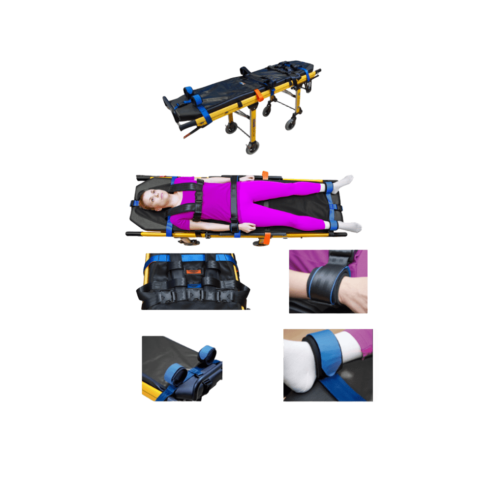 Salvafax transfer para camilla. Salvafast Transfer es un sistema de contención y transferencia rápida de pacientes agresivos a camillas de emergencia, con arnés, muñequeras y tobilleras de Velcro®.