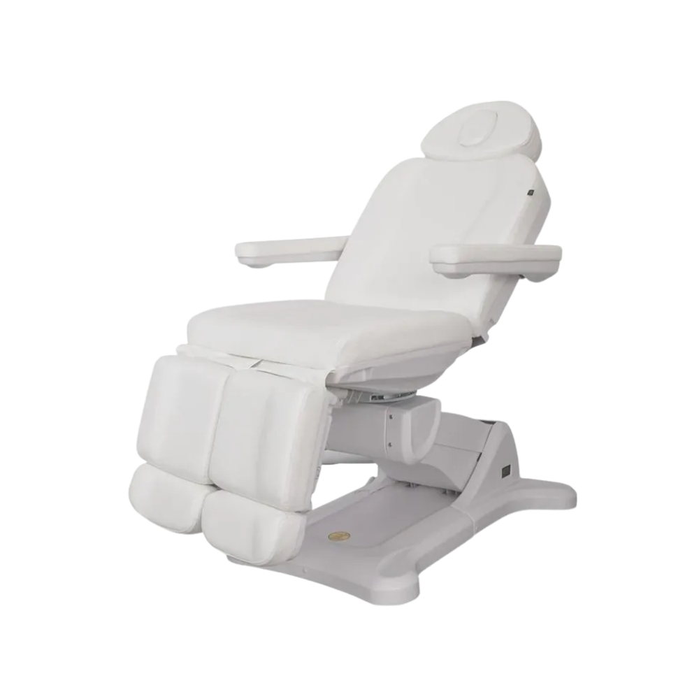Sillón de podología de alta gama – Precisión, confort y funcionalidad avanzada para el profesional Este sillón de podología de alta gama está diseñado para ofrecer el máximo rendimiento clínico y confort tanto para el profesional como para el paciente. Su capacidad de rotación de 240° permite un acceso total al área de trabajo sin necesidad de desplazar al paciente, optimizando el espacio y la ergonomía durante los tratamientos. Equipado con 3 motores eléctricos, permite ajustar de forma independiente la altura, la inclinación del respaldo y del asiento. Los reposapiés son regulables en altura de forma independiente mediante pistón de gas, permitiendo una posición precisa de las extremidades durante los procedimientos podológicos. Dispone de reposabrazos abatibles y reposacabezas ajustable para mayor comodidad. Las botoneras integradas en el respaldo, asiento y reposapiés permiten controlar todos los movimientos desde cualquier punto del sillón. Además, incorpora la función RST (Return to Start), que permite regresar automáticamente a la posición inicial de trabajo. El tapizado en poliuretano (PU) blanco de alta calidad es resistente, confortable y muy fácil de limpiar, cumpliendo con los requisitos de higiene en el ámbito clínico. Características destacadas: • Sillón de podología de alta gama con rotación de 240° • 3 motores eléctricos: altura, respaldo y asiento • Reposapiés regulables en altura mediante pistón de gas • Reposabrazos abatibles y reposacabezas ajustable • Botoneras integradas para control total de movimientos • Función RST: retorno automático a la posición inicial • Tapizado en PU blanco, resistente y de fácil limpieza • Medidas: 136 x 82 x 64 cm .