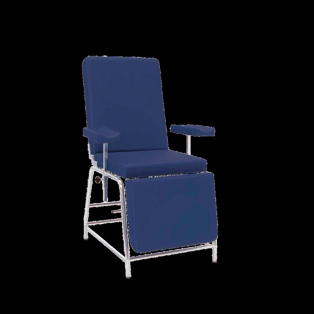 Sillón para extracción de sangre – Confort, estabilidad y ajuste ergonómico Estructura de acero cromado, respaldo y piecero articulados, reposabrazos regulables y tapizado ignífugo en polipiel. Ideal para unidades de extracción y donación.