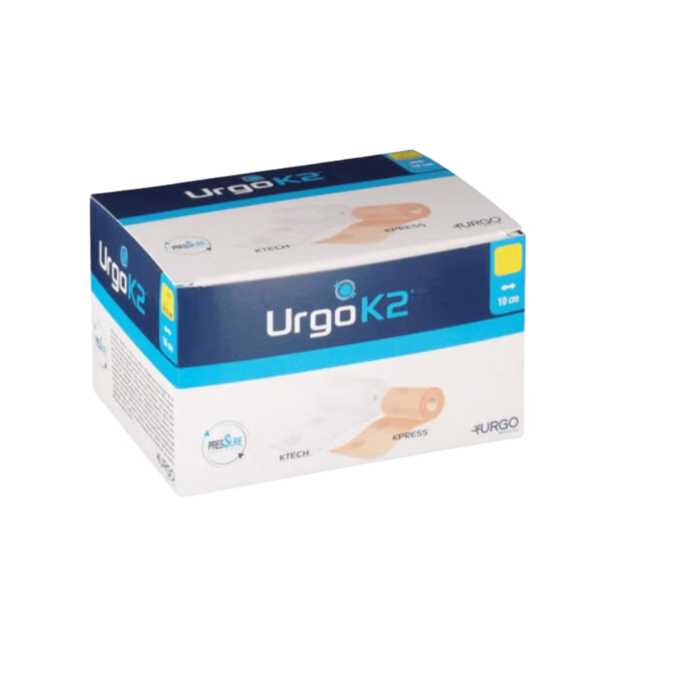 El UrgoK2® Latex Free es un sistema de vendaje compresivo bi-capa diseñado para ofrecer una presión fuerte y controlada de 40 mmHg en el tobillo, optimizando el retorno venoso y favoreciendo la reducción del edema. Gracias a la innovadora tecnología PresSure desarrollada por Laboratoires URGO, el sistema garantiza la presión terapéutica adecuada desde la primera aplicación, de forma segura, sencilla y reproducible, incluso por personal no especializado en compresión avanzada. Su estructura bi-capa proporciona un efecto masaje al caminar, combinando una presión de reposo moderada con una presión de trabajo elevada, lo que mejora la circulación venosa y acelera el proceso de cicatrización. Además, ofrece un alto nivel de confort tanto durante el día como por la noche, y mantiene su eficacia y correcta posición hasta 7 días consecutivos. Características destacadas: Sistema bi-capa sin látex. Presión terapéutica controlada de 40 mmHg en el tobillo. Efecto masaje activo durante la marcha, que mejora el retorno venoso. Presión de reposo moderada y alta presión de trabajo. Aplicación segura y precisa gracias al sistema PresSure. Alta comodidad para uso prolongado (día y noche). Estabilidad del vendaje hasta 7 días, sin pérdida de compresión.