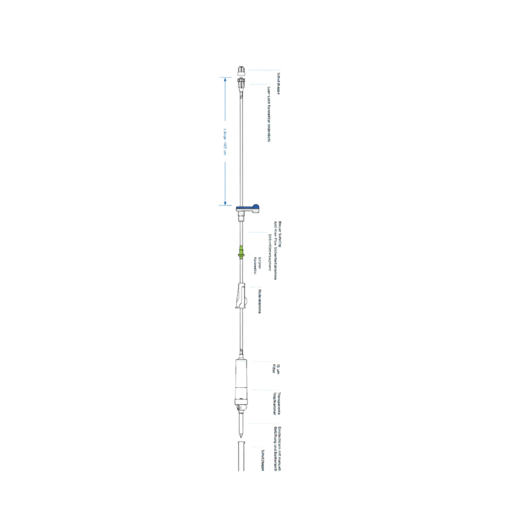 Sistema de Infusión VL Fresenius – Línea 285 cm – Caja x30 Uds Set de infusión de PVC y silicona, sin DEHP ni látex. Longitud de 285 cm, volumen de purga 25 ml. Con clamp de seguridad anticaída libre. Presentación individual.