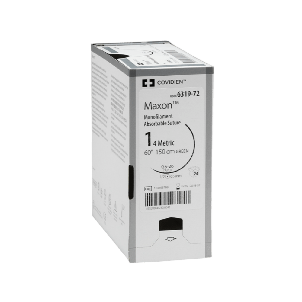 Maxon™ – Sutura Sintética Absorbible Monofilamento Soporte prolongado con mínima reacción tisular Maxon™ es una sutura quirúrgica absorbible, sintética y monofilamento, fabricada con poligluconato, un copolímero de ácido glicólico y carbonato de trimetileno. Está diseñada para proporcionar una alta resistencia tensil inicial y una absorción lenta y predecible, lo que la hace ideal para procedimientos que requieren un soporte prolongado del tejido durante la cicatrización. Gracias a su proceso avanzado de extrusión, Maxon™ ofrece un diámetro uniforme, excelente manejabilidad, bajo efecto memoria y una óptima seguridad en el nudo, facilitando su uso incluso en técnicas quirúrgicas exigentes. Características y beneficios: • Composición de poligluconato, absorbible por hidrólisis • Monofilamento que reduce el trauma tisular y el riesgo de infección • Alta resistencia in vivo durante el periodo crítico de cicatrización • Absorción prolongada, ideal para tejidos que cicatrizan lentamente • Excelente comportamiento en el anudado, con seguridad y estabilidad • Diámetro uniforme que facilita la manipulación y el paso por tejidos • Baja memoria de forma para un control quirúrgico más preciso • Indicada para cirugía general, gastrointestinal, ortopédica, urológica y otras especialidades donde se requiera soporte a largo plazo .