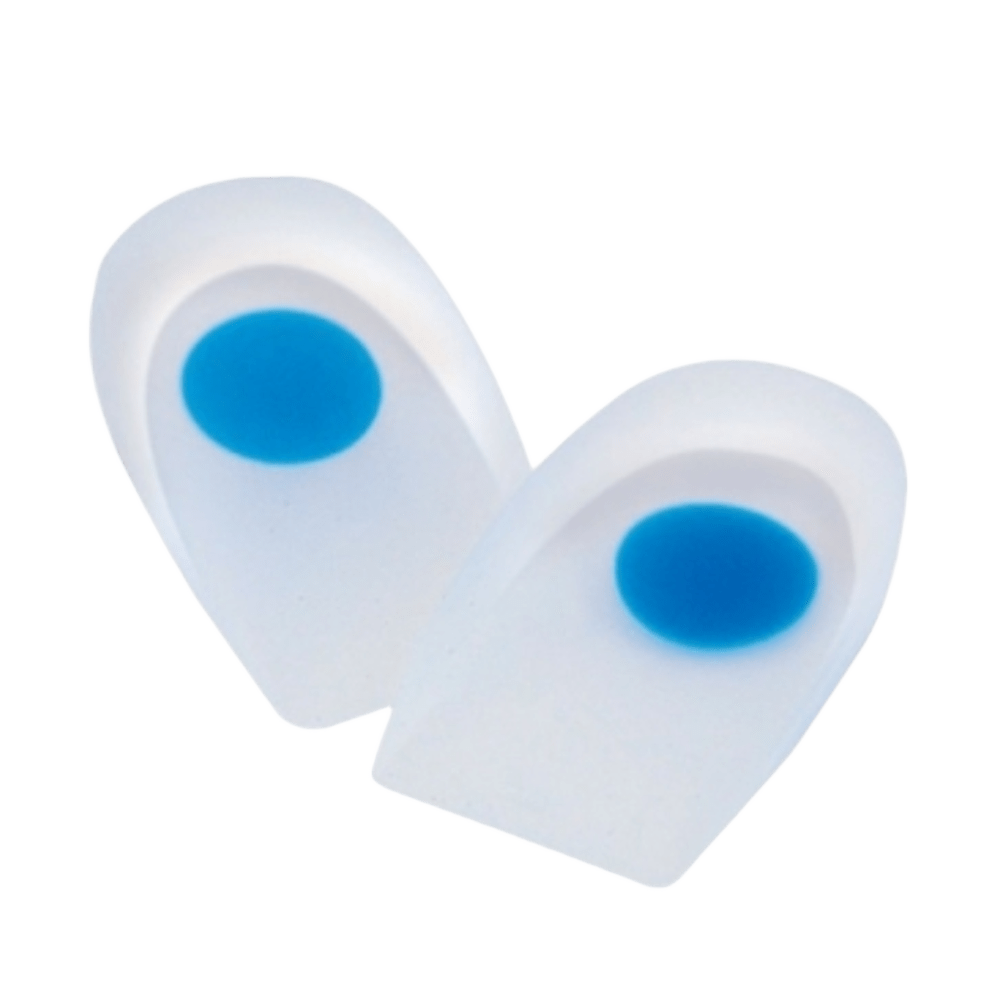 Taloneras de silicona de doble densidad que proporcionan amortiguación y alivio del dolor en el talón. Ideales para espolón calcáneo, son lavables, reutilizables y disponibles en varias tallas.